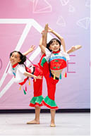 5月7日,興堅舞蹈學校迎來了本次比賽的重頭戲——我們有近30位小朋友參與獨舞、雙/三人舞和集體舞當日的角逐。Michelle Shi瀟灑激越的《馬背少女》,Stefanie Huang上學路上的《苗族姑娘》,Audrey An情深似海的《我心依舊》,Amanda Zhang柔美婉約的《雨中花》, Cynthia Li可愛俏皮的《中國芭比》,明麗灑脫的《草原之春》,典雅清新的《風荷麗影》,榮獲“最美造型”評委特別獎的《吉祥孔雀》,吱吱喳喳的《瘋狂的小鶏》……,絢麗的民族風輪番上陣,把賽場變成了不同風格中國舞的展示台。其中,“低回蓮破浪,淩亂雪縈風”的Faith Zhang,一曲《愛蓮說》把淩波仙子飄逸欲飛的風采表現得淋漓盡致,奪得民族舞類別大獎和“身輕如飛羽”的評委特別獎。融情於舞的Jasmine Zhang,更是把《日出》中陳白露從神采飛揚到落寞憂鬱的情緒轉折表現得絲絲入扣,斬獲“最佳情節演繹”評委特別獎。更加值得一提的是我們的大型集體舞,17位表演二隊的小朋友在兩個月的時間裏趕拍的《一行白鷺向天歌》一舉奪得一等獎,而以興堅舞校表演隊爲主體的12位力爭上游的“小飛魚”們共同演繹的《鯉魚跳龍門》更是憑藉精湛的舞技、出色的編排和震撼人心的氣勢藝驚四座,連奪大型集體舞的一等獎、總分Top 1和“最優異舞者”大獎,把賽事推向高潮。