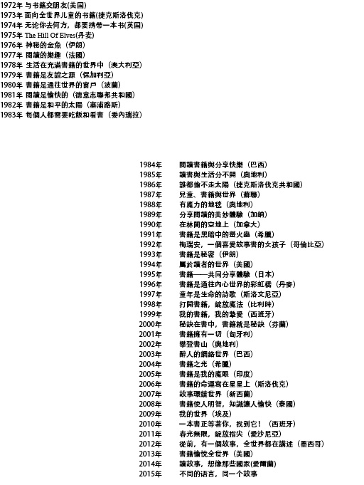 下面是國際兒童讀書日歷年的主題。