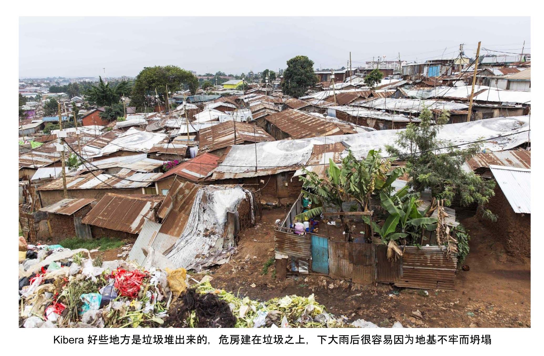 Kibera貧民區位於內羅畢的市中區南側,它是殖民統治留下的産物,在二十世紀初,烏干達鐵路綫建成加上殖民者的種族隔離制度,有大批進城打工的工人和退伍軍人在鐵路周邊安頓下來,漸漸形成了這個非洲最大的位於城市中心的貧民窟。由於這裏的居民生活方式混亂且缺乏政府管理,聯合國和肯尼亞政府僅僅爲了統計它的人口數量就傷透了腦筋,人口統計數據從17萬到一百萬不等,這些數據差別也太大了點,不知道該信哪個。