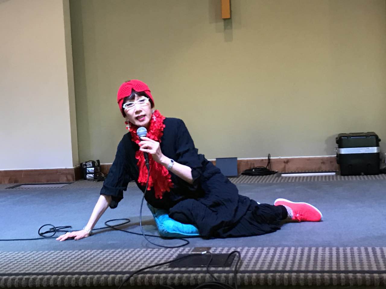 九月二十三日(週日)下午2點30分,由人文磚暨美華人文學會、聖地亞哥中華藝術文化學會和聖地亞哥婦女會聯合主辦的“京劇何戲?雅音傳薪”講座,邀請曾經對京劇在台灣創新做出重大貢獻的台灣京劇名伶郭小莊暢談她的五十年京劇生涯。講座由藝術文化學會前主席馬良平致辭,磚基金會王小蘭向聽眾簡介郭小莊的藝術生涯之後,然後身穿黑色長袍搭配紅帽、紅圍脖、紅鞋的郭小莊悠然登台,開始她生動迷人的演講。