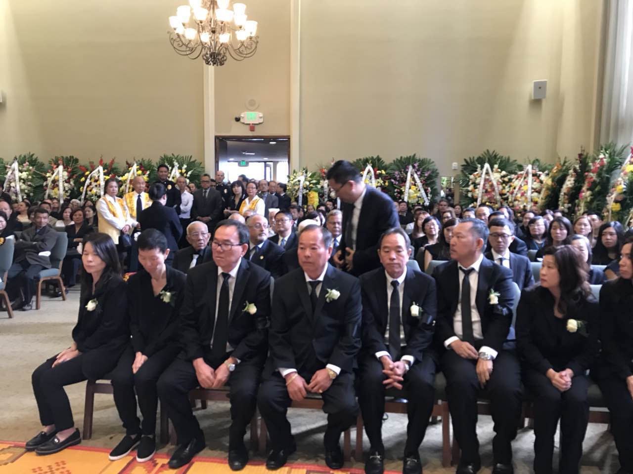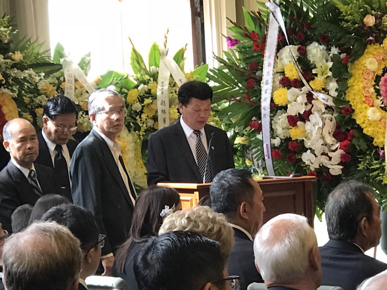 治喪委員會主任委員彭應吉先生在悼詞中回顧了余氏家族在兩位大家長的帶領下團結一心、艱苦奮鬥的成功經歷。他指出,“上世紀七十年代,余太夫人隨夫婿、子女離開風狂雨驟的越南,漂洋過海,幾經輾轉,歷盡艱難,終於來到美國這個自由國度。在余氏家族白手起家,重新創業的過程中,余太夫人恪盡母職,相夫教子,含辛茹苦,以孜孜不倦的勞作,以無比的愛心,支持著方興未艾的事業,維繫著親密無間的家庭。她為我們留下了識大體,顧大局的榜樣,留下了克勤克儉的好家風,以及不忘桑梓,造福郷鄰的慈善情懷。余太夫人值得我們世代懷念,她的美好風範定將長留人間。”