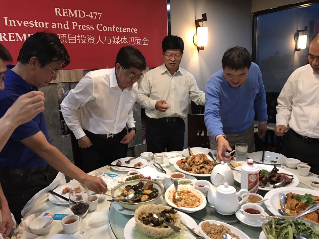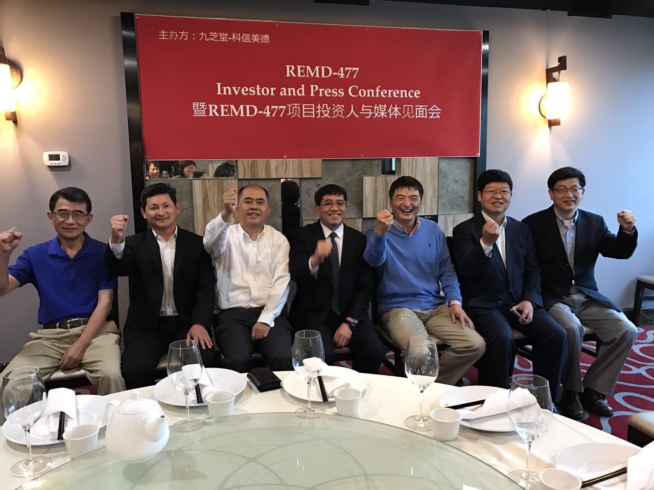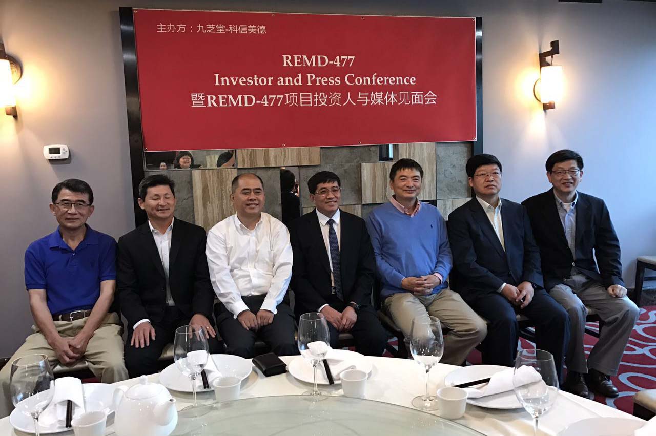 另:6月11日(週日)晚,由聖地亞哥中國人協會副會長、科商會副會長、著名僑領曾晶女士安排,九芝堂——科信美德在福臨門舉辦了REMD-477項目投資人與媒體見面會,投資方九芝堂與瑞美德公司在北京的分公司科信美德的老總們向聖地亞哥媒體就雙方的合作做了簡要的介紹。