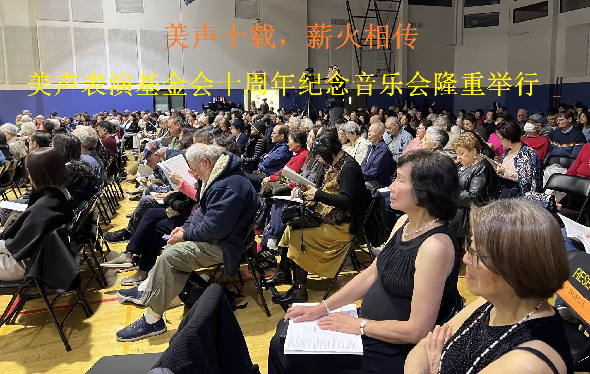 这场十周年音乐会还经历了一段惊心动魄的插曲。音乐会原计划在劳伦斯家族犹太社区中心的专业剧场举行,但演出当天下午五点半,音乐家们抵达剧场时却发现剧场因不明原因突然停电。眼看音乐会面临被迫取消,数百名已在路上的观众可能无功而返。林秋美老师本着对观众和艺术负责的执着态度,持续与中心方面沟通协调,最终促成音乐会临时改在大楼另一端的室内体育馆举行。工作人员与志愿者迅速行动,在短短半小时内将两架钢琴从剧场转移至体育馆,并临时布置了三百余把座椅,确保音乐会得以按时开场。结果场内座无虚席,甚至有观众全程站立欣赏演出,这一意外插曲反而成为当晚最令人动容的记忆之一。