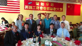三、黃惠明不僅是一位成功的餐飲業翹楚,還熱心公益,是聖地亞哥英端工商會會長,圖為2016年英端工商會春節晚宴上黃惠明與主桌嘉賓。
