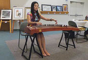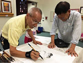 講評之後,我們邀請到剛在斯坦福大學舉辦的國際音樂大賽中獲得金牌的青年古箏演奏家趙欣彤,請她演奏了《茉莉芬芳》等著名曲目,最後,由評委譚元稷和李克恭老師現場繪畫。