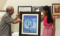 八月二十三日(週二)下午六點半,在聖地亞哥Rancho Penasquitos 公共圖書館,美國華人優秀小畫家獲獎作品與評委畫作聯展開幕式在圖書館會議大廳舉辦,五十幅在第三屆青少年藝術節繪畫比賽中獲獎的小畫家們和他們的評委老師們的作品參加了展出。