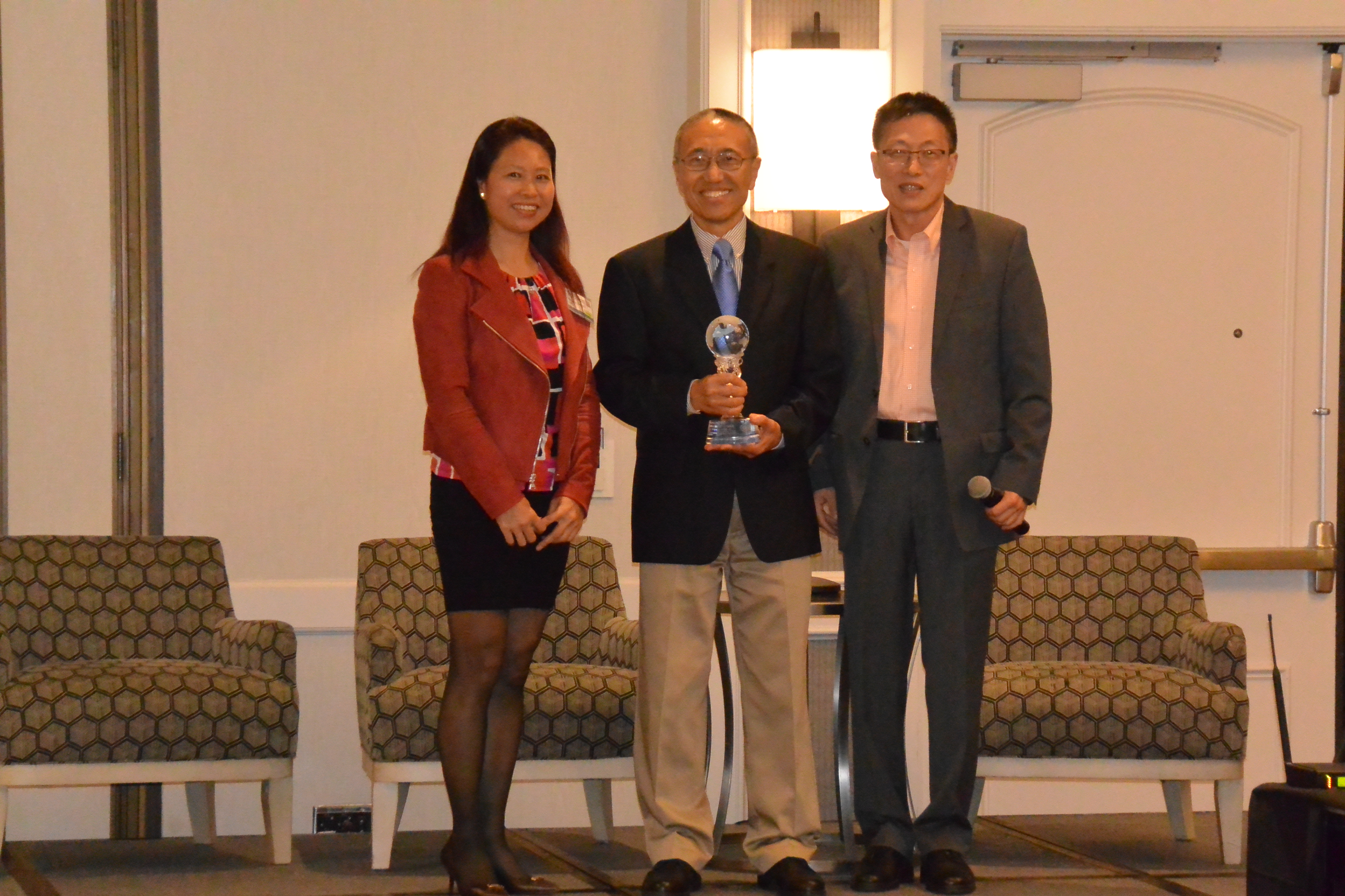 晚宴首先由會長施濤博士致辭,感謝所有與會嘉賓,所有辛勤工作的SABPA前任理事長竺惠椿同現任理事長張明珠博士爲前任會長劉亞虎頒發了SABPA榮譽獎,劉亞虎博士爲人低調謙和,長年義務爲SABPA工作,任勞任怨,大家都說這個獎項真是實至名歸。頒獎時,當大投影屏幕上播放完劉亞虎博士多年來在SABPA不同活動中的照片後,打出結束語“得亞虎者得天下”,贏得全場雷鳴般的掌聲。正式晚宴啓動前,與會的各位前任和現任SABPA負責人分別發表了感言,理事長張明珠博士感慨自己在爲SABPA工作期間學會了作爲一個女人如何當一位領導。