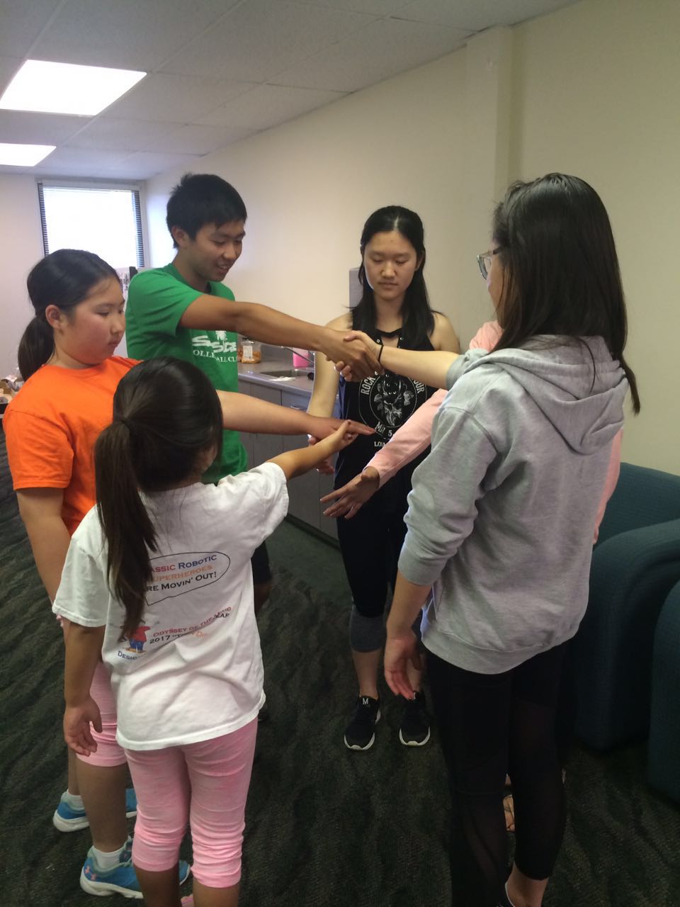 之後,形象大使們參加了各種團體活動,在幾個小游戲中體驗了“團結就是力量”這句話的智慧。通過精心準備的有助於溝通、思考、合作解决問題的題目,他們感受到了團體的力量。組織者Nancy Wu解釋:作爲一個團體,他們要瞭解如何互相幫助,在作一個領導的同時也要完成一個優秀成員的角色。不論是解決一個如何在站在上面的情况下將一個布塊翻到另一面這種簡單的問題,還是如何成功地組織並領導一個活動,背後的團隊都能成爲最堅强的後盾。