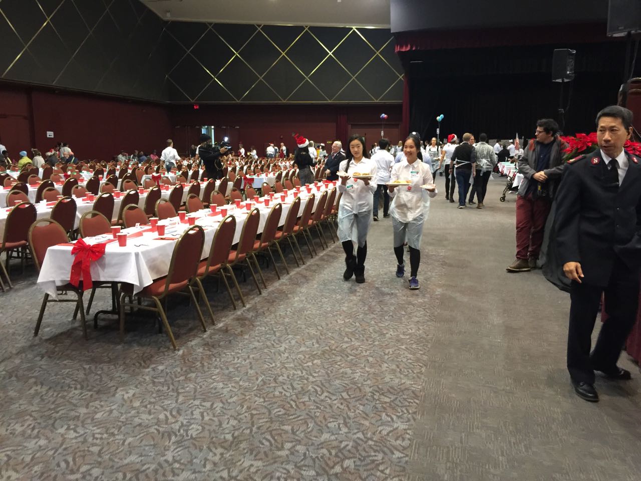 YCC (Youth Care Club) 部分同学参加一年一度的圣诞节晚餐的志愿者服务活动照片。此次活动是圣地亚哥童子军组织的服务社区活动( The Salvation Army Christmas Dinner San Diego) 时间:(December 25 2017) 地点:市中心大厅