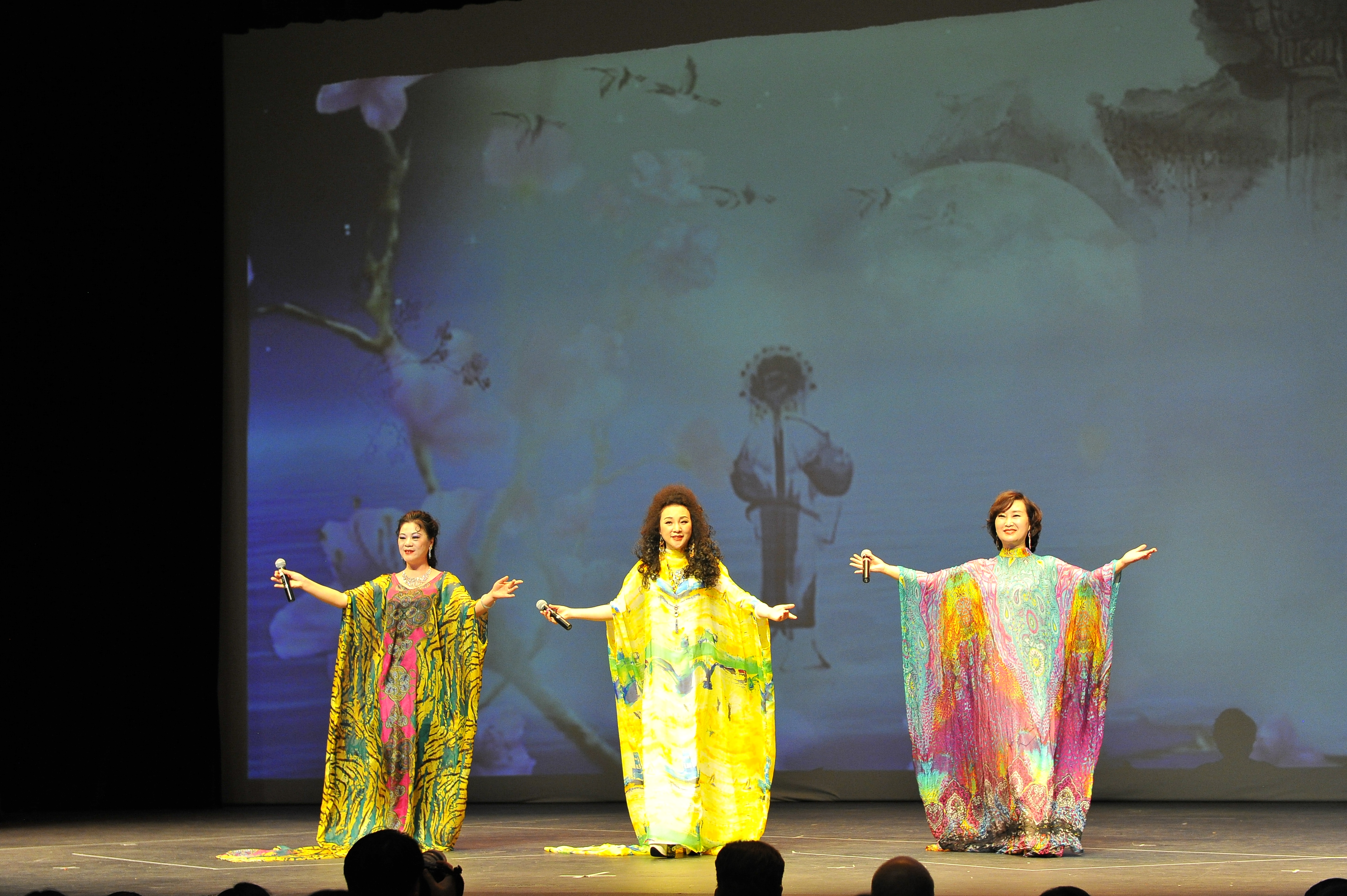 晚會上湖北藝術團的藝術家們還爲大家帶來了漢劇《王昭君》、楚劇《葛麻》等地方戲曲以及京歌《梨花頌》,著名表演漢劇藝術家王荔、楚劇表演藝術家彭青蓮、京歌演唱歌唱家江鳴鳴、唐莉和舊金山海外湖北聯誼會會長譚月的精彩演唱,弘揚了中國的傳統文化。《永遠跟你走》、《登山纜車》、《故鄉情深》、《絨花》、《鄉音鄉情》等耳熟能詳的曲目不僅展現了藝術家們深厚的演唱功底,更表達了他們對藝術的感悟和對生活的歌頌。更為難得一見的還有四位男中音男高音歌唱家亦同是聲樂教授的畢駿峰、竇烈偉、周建良和蘇俊愷同台演唱,令觀眾大開眼界,也充分領略了教授藝術家們豐厚的音樂素養。