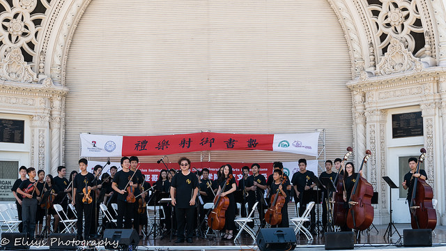 九月二十二日(週六)中午,在熱鬧的市中心巴博雅公園的管風琴露天劇場,一場精彩的演出在這裡舉辦。美國華人青少年交響樂團、美國華人青少年模特隊同時參加了由中國館領銜主辦的這場中秋節大型慶祝活動。四十多位身穿黑色樂團T恤的小樂手們在揚聲老師指揮下,演奏了兩首中國交響樂去《瑤族舞曲》和《塔里木隨想曲》,時而舒緩時而激烈歡快的樂聲令聽眾見識了小樂手們的功底。
