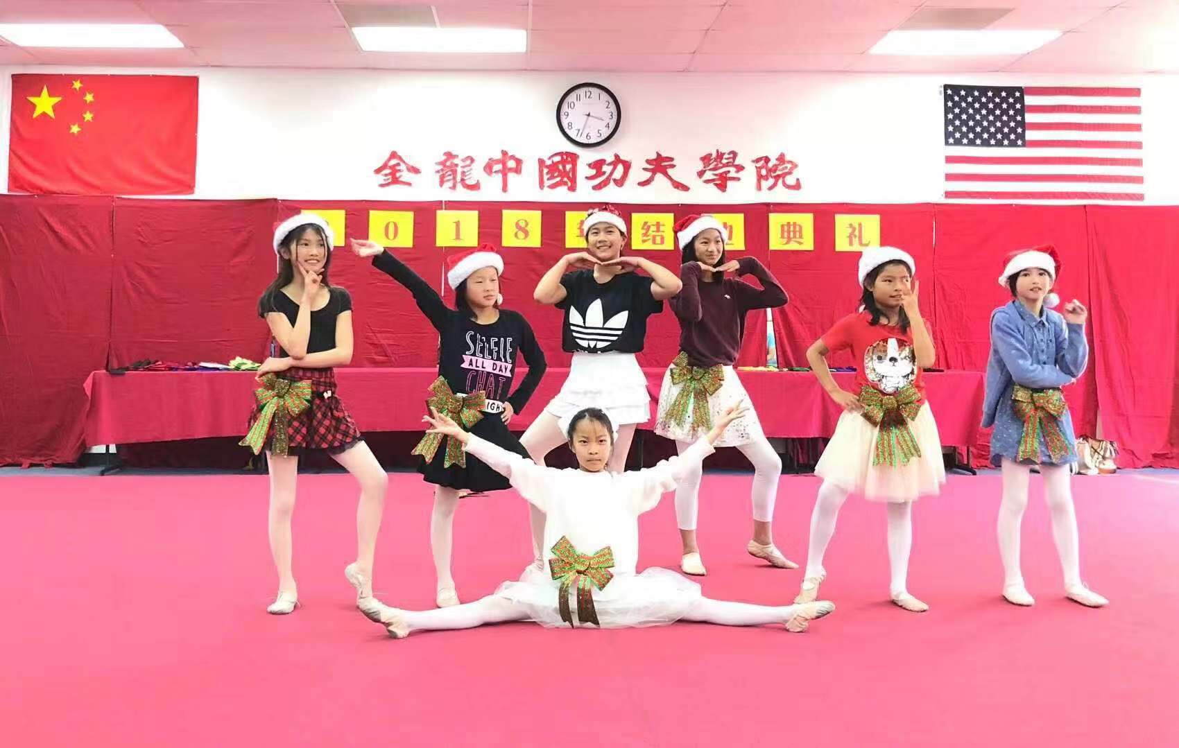 接下來的才藝表演,小學員們為家長和觀眾們獻上拿手好戲。從民族舞蹈到Jazz舞蹈,從歌曲合唱到專業武術,精彩節目應接不暇,喝彩掌聲不斷。“外婆的澎湖灣”,“Me Too”爵士舞,“海草舞”,新疆舞等受到熱捧,甚至在觀眾的強烈要求下返場表演!活動最後,Tina和劉穎老師執教的金龍舞蹈隊用一曲“Merry Christmas”為大家送上了來自金龍學院的節日祝福。