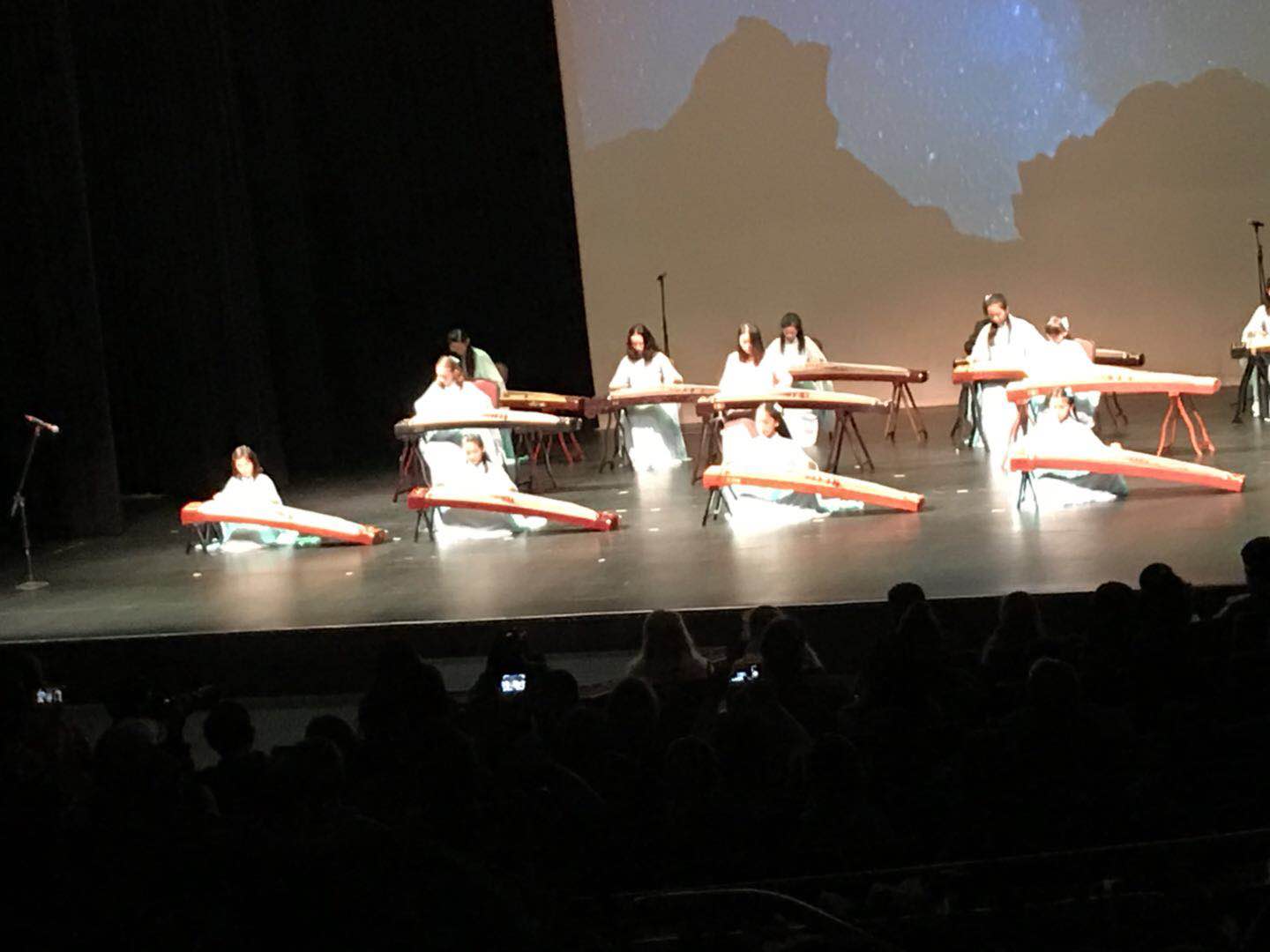這個晚會是由育才中文學校主辦,演出者上百人,既有育才的眾多才藝學生和老師,更邀請了不同族裔諸如美國、俄國、波蘭、西班牙等著名音樂家參演,無論是節目的廣泛性方面、還是演出水平方面,都已經遠遠超出一個單獨的中文學校的藝術水平。這其中包括諸多亮點:其一,青年舞蹈家李彥振老師編排、由育才·墨舞坊成人表演班表演的《韻·舞》,是一段舒展又靈巧敏捷的身韻組合,充分體現了中國舞身韻中形神勁律,手眼身法步完美結合和高度統一的美學特色,她們的首次亮相展示了實力;其二,畢業於倫敦皇家音樂學院的年輕豎琴演奏家Stefan Wendel的豎琴表演,樂聲如清泉、像天籟、抑揚頓挫、娓娓動聽,首次亮相華人社區,讓觀眾大開眼界;其三,熱情似火的拉丁音樂在聖地亞哥地區蓬勃發展,多國籍音樂家組成的小型樂隊Magic Flute and Los Caballeros帶給廣眾不一樣的衝擊與震撼,特別受到觀眾的歡迎;其四,育才優秀才藝教師Larry Razanav 和Xenia Razanav父女檔吉他伴奏演唱,給人帶來的是聽覺和視覺的極大享受。這對父女已經成為最受觀眾歡迎的節目之一,也是育才學校的音樂品牌。在這場演出中,觀眾還領略了古箏樂坊周思言老師帶領下的集體古箏演奏,一曲《北京的金山上》歡快激昂,讓觀眾認識了思言古箏樂坊的實力及十數位小樂手的潛力。此外,孩子們的幾個舞蹈、姐妹花Jenny & Jessica Mar的鋼琴四手聯彈、蔡則平老師指導的獨唱、黃琴老師指導的育才之星功夫表演、劉婷老師指導的流行歌曲和街舞的聯演、Vivian Bergova老師指導的長笛獨奏等,都給人留下了深刻的印象。令人耳目一新的還有邀請到青花瓷舞蹈團演出的舞蹈《雨打芭蕉》首次在聖誕新年晚會亮相,清新柔美獨具一格。