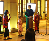 小記者的中秋表演幷沒有停止,他們把慶祝中秋的步伐延伸到更多的社區觀衆。9月17日,小記者在中華歷史博物館再次爲兩百多位華洋觀眾上演了一台精彩的節目。這台節目由小記者全程參與,策劃,主持和演出,有的還自編自導自演。下午兩點,六歲半的江語妍以精彩的舞蹈爲這場節目拉開了序幕,緊接著極具中國特色的越劇《紅樓夢》演唱、精彩的古箏、長笛、相聲、小品、小模特漢服演義、獨唱、合誦……一個接一個亮相,精彩的表演讓現場的觀衆拍手叫好。演出結束後,觀衆還紛紛向小記者祝賀,與他們合影。現場擠滿了到場的觀衆,掌聲和笑聲灑滿中華歷史博物館學習中心的每一個角落。