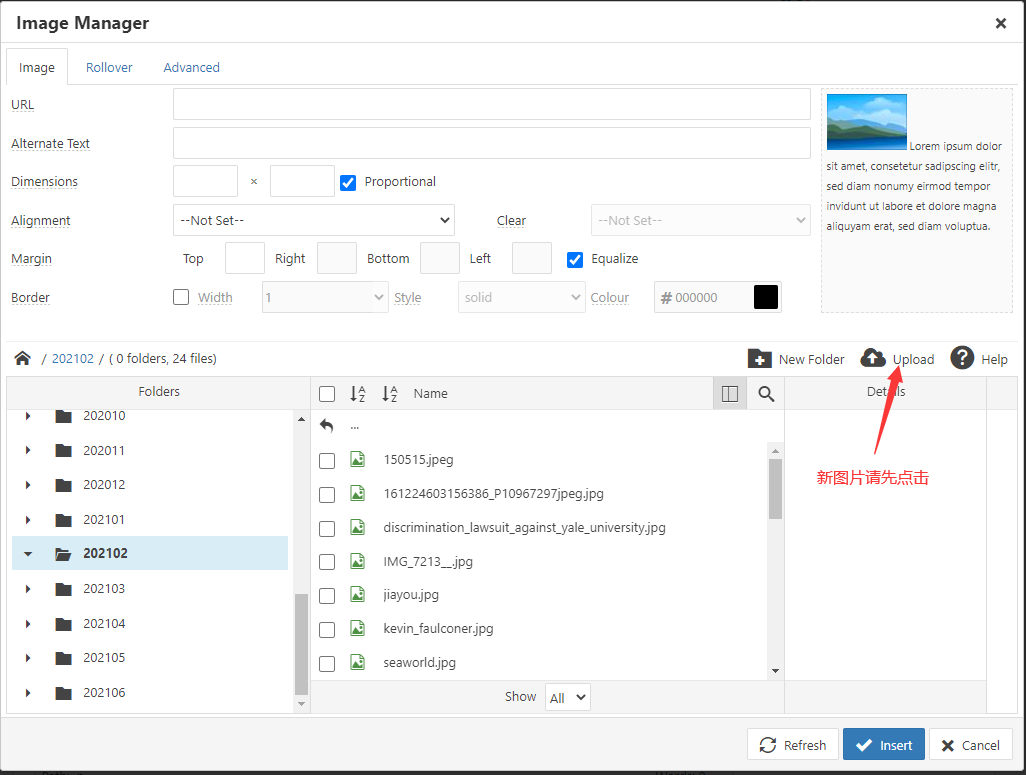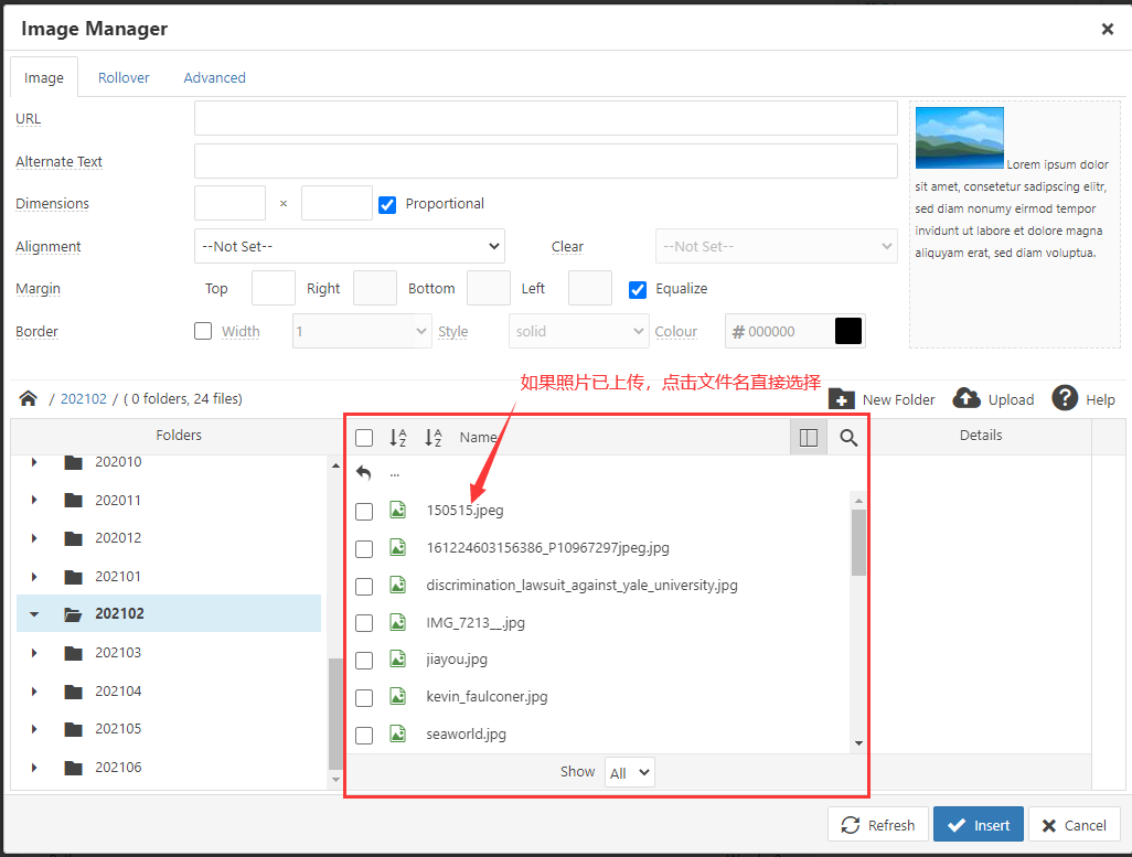 4. 如果照片已在服务器,或者刚刚上传完毕,点击文件名选择照片: