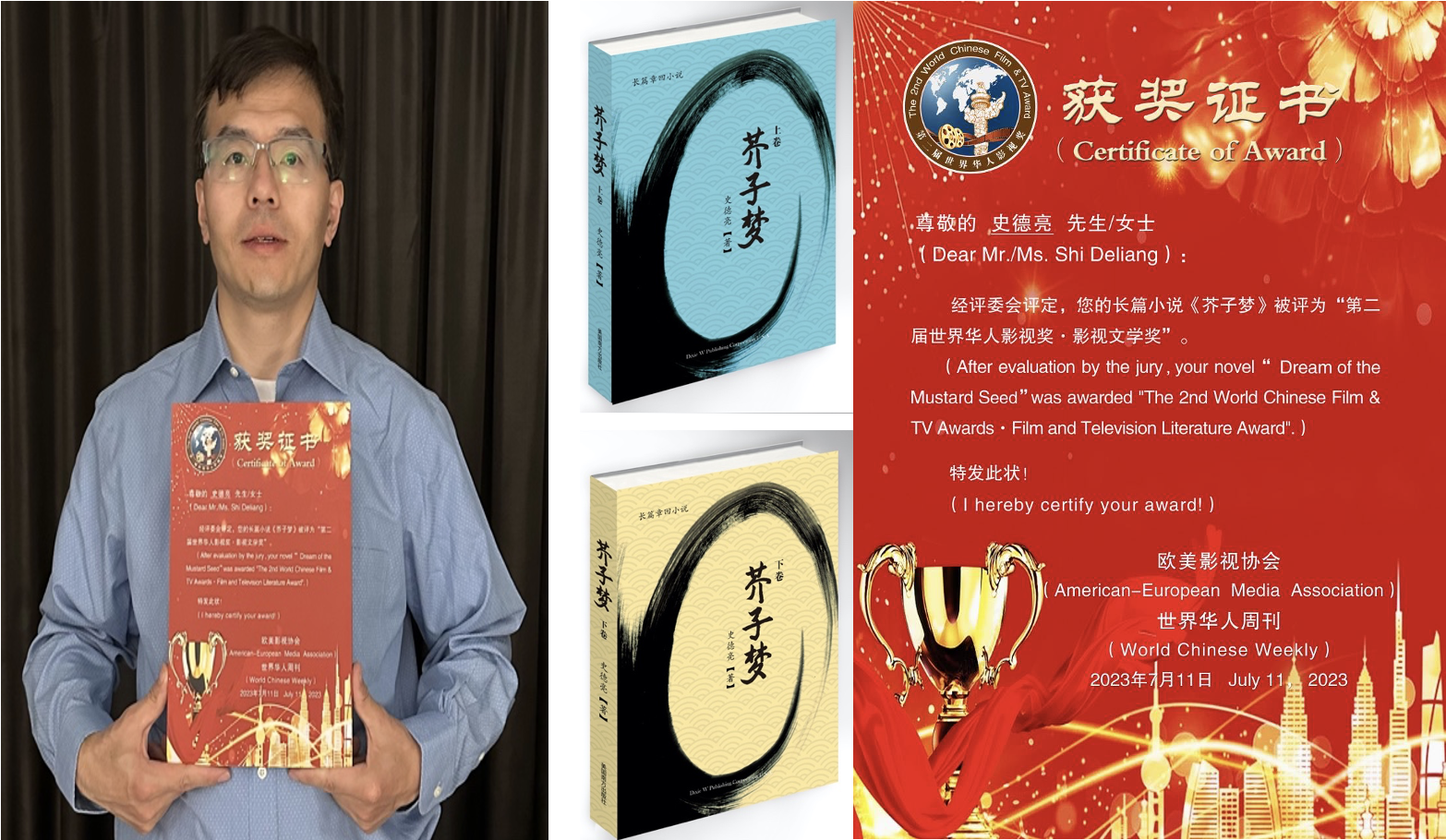 史德亮的長篇小說《芥子夢》榮獲“第二屆世界華人影視文學獎”