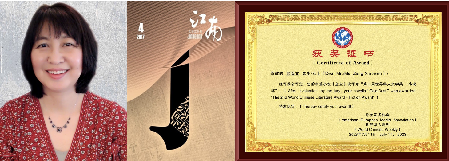 曾曉文的中篇小說《今塵》榮獲“第二屆世界華人文學獎·小說獎”