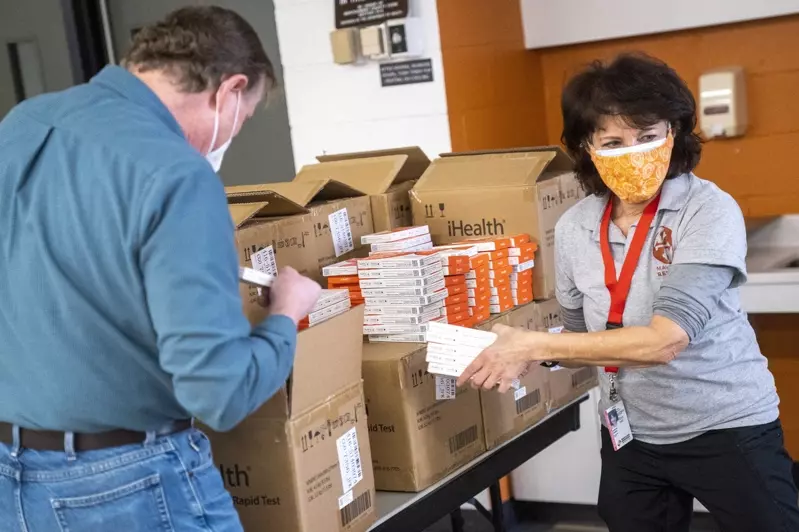 Maryland began distributing home test kits. The picture shows Montgomery County Library staff and volunteers preparing to distribute the kits. (European News Agency)
