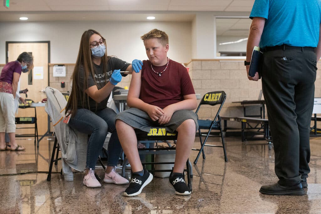 Caden Haynes, 12, receiving the Pfizer-BioNTech vaccine in August at Carey Junior High School in Cheyenne, Wyo.Credit...Rachel Woolf for The New York Times (Photo from The New...
