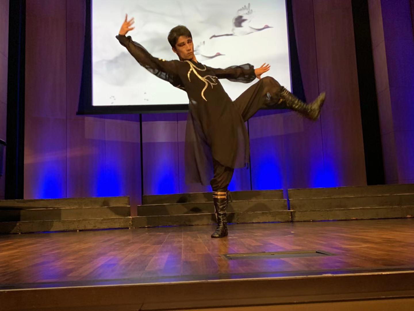 音樂會上兩位舞蹈家北京舞蹈學院的高材生李彥震和南京藝術學院的沈凡分別演出了屠龍和麗人行兩段舞蹈,盡顯專業功底。