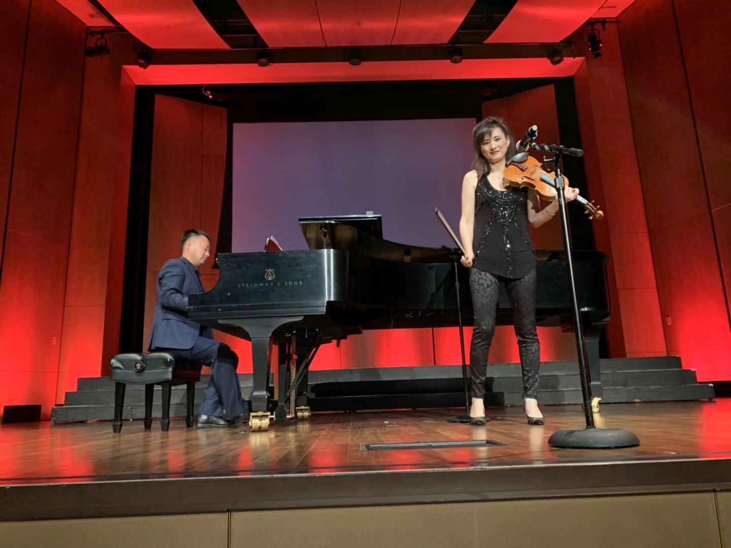 兩位著名音樂家應邀前來演奏。鋼琴家余丹演奏了貝多芬的3rd movement:Rondo from “Pathatique Sonata”(悲愴奏鳴曲),余丹老師琴技出神入化,演奏如醉如痴,具有極大藝術感染力。小提琴家沈桑老師老師演奏了兩首樂曲。第一首Give Me Love,這是沈桑老師翻拉的近年唱紅中國的哈薩克斯坦歌手迪瑪希的一首名曲,沈桑老師特意帶來她演奏時的MTV作為背景播放。第二首是名曲《Czardas》,優美悅耳的小提琴演奏,加上余丹老師鋼琴伴奏,兩位音樂家配合默契,演繹著天籟之音。