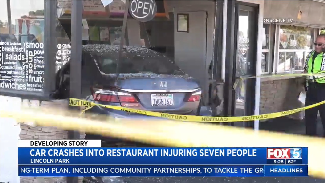 一辆本田车撞进圣地亚哥一家餐馆,造成7人受伤