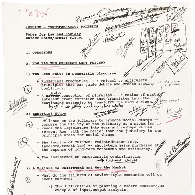 美国【华人】传媒编辑唐钊,2022年十月月九日)前总统巴拉克·奥巴马(Barack Obama)上大学时写的一份手稿批评了民主党,认为自由主义者的“无舵实用主义”使他们在与共和党人的文化战争中束手无策。(图片来自纽约时报)